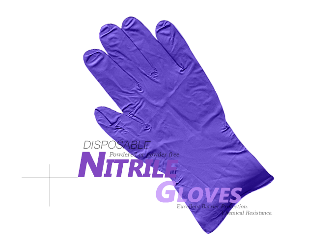 Nitrile gloves are made from nitrile rubber. Nitrile disposable gloves are one of the most popular types of gloves across many industries today. Nitrile is a synthetic, allergy-safe substitute for latex in all applications, with greater chemical resistance. The gloves are available in different colors and come in varying thicknesses. Thick nitrile gloves are commonly used in industry work, regular thickness nitrile gloves are mostly a popular application for mechanics, medical professionals, food preparation workers, laboratory workers and so on. Nitrile gloves offer chemical and water resistance and they are a common choice as both a chemical and physical barrier to those hazards.